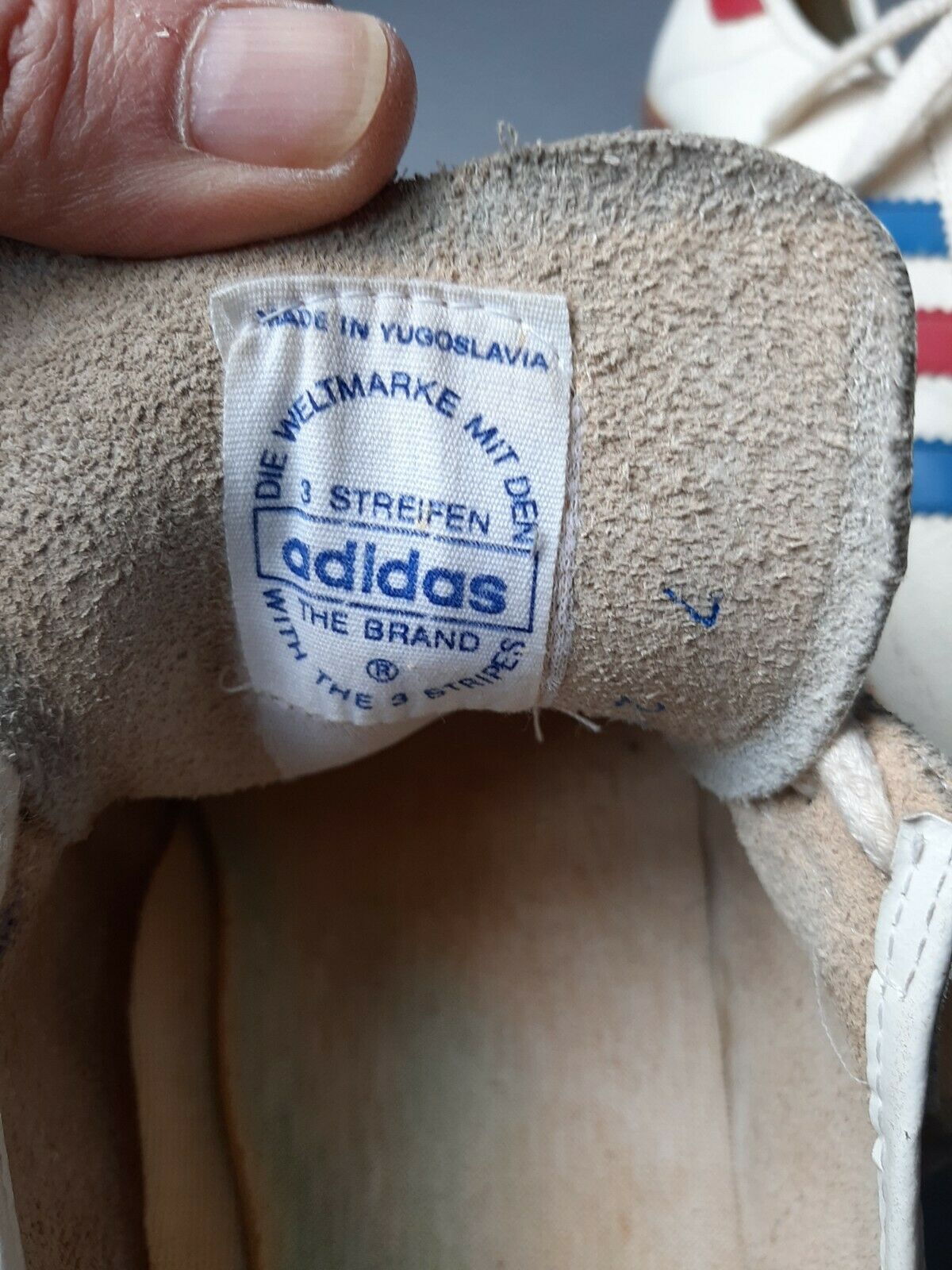 These are Adidas SL 72 trainers. Like the KIEL above, these also came out during the 1972 Munich Olympics.These too are vintage Adidas made in Yugoslavia, which I just learned split up into seven separate countries after the civil wars of late last century.I can find nothing about SUPER REKORD Adidas, only non-super versions which are still being made. I'm almost done.
